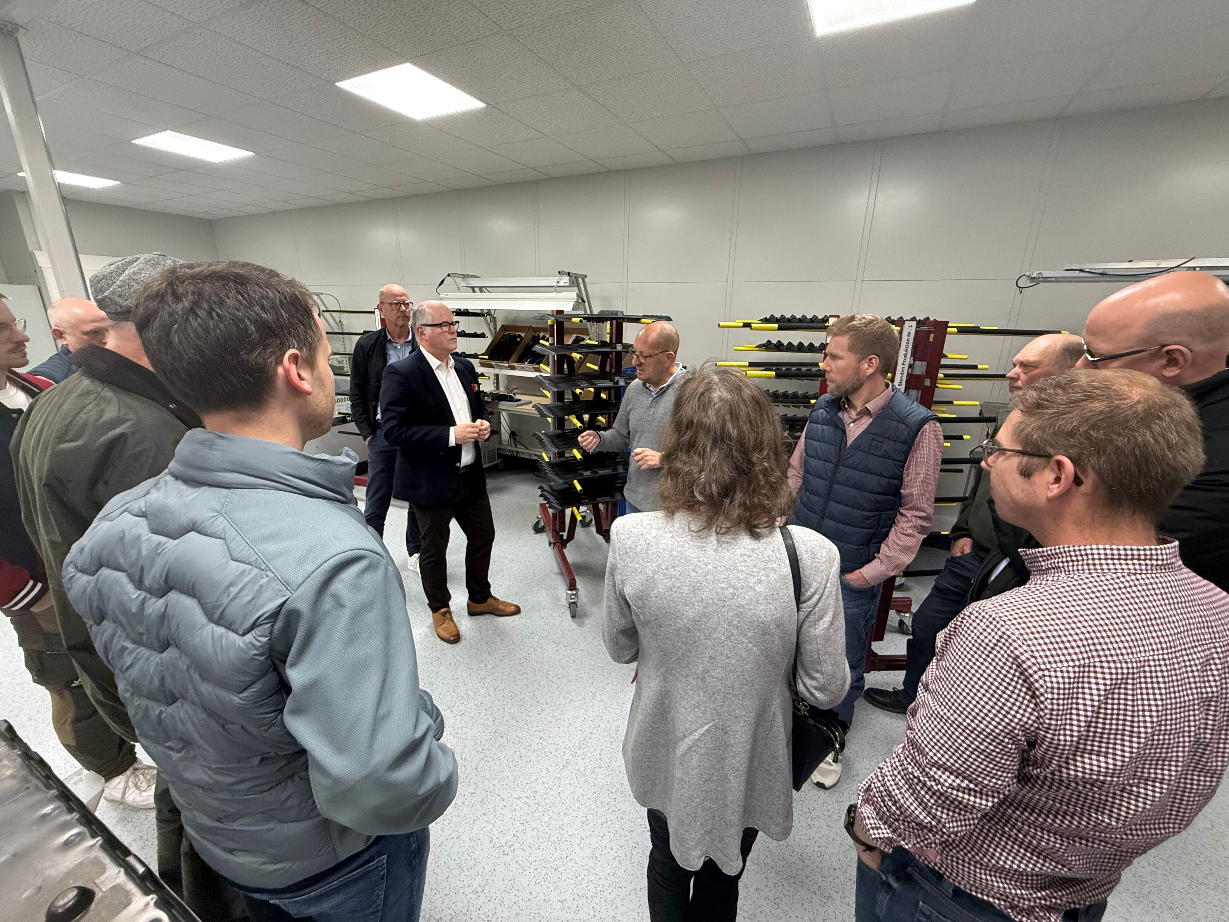 Eine anschließende Begehung der Betriebsstätte ermöglichte der Delegation einen direkten Einblick in die Fertigungsabläufe und die technische Ausrichtung des Unternehmens. Der Abend fand seinen Abschluss in informellen Gesprächen, bei denen die Teilnehmer den Austausch über kommunalpolitische Themen sowie regionale Wirtschaftsförderung vertieften.